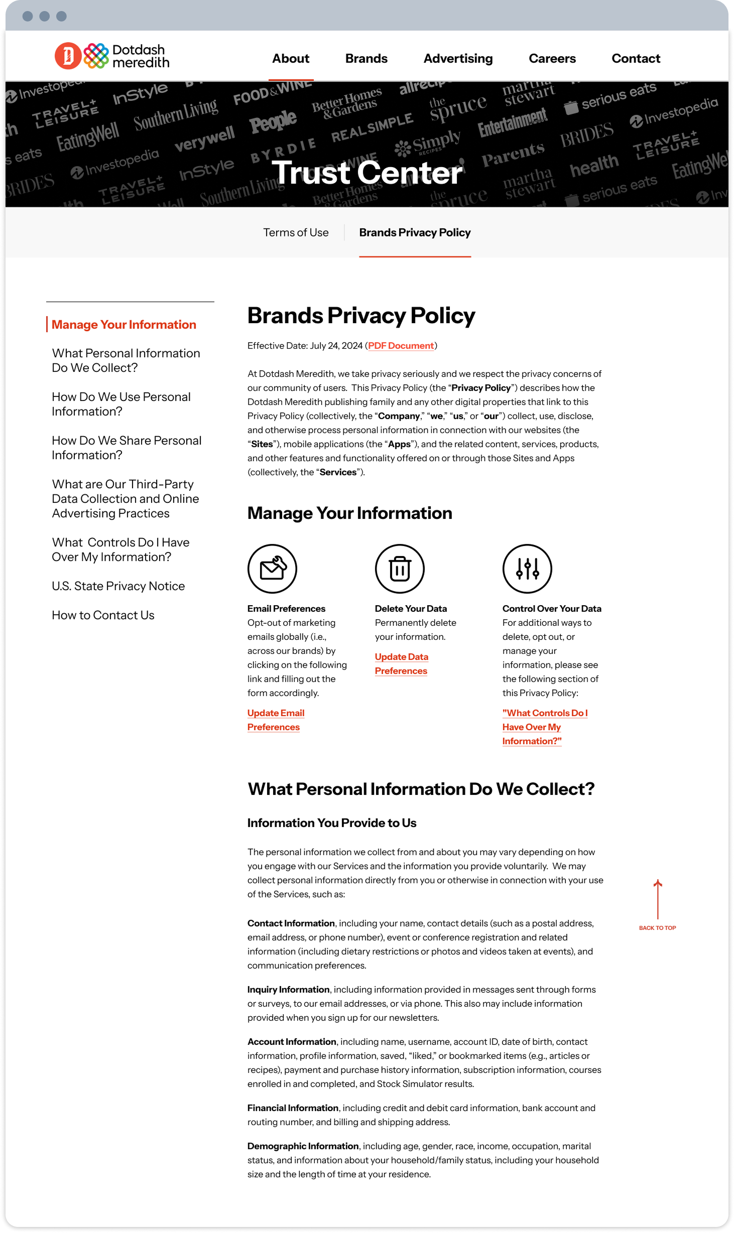Competitors had Privacy Hubs that allow users to toggle between multiple legal documents from one centralized location.