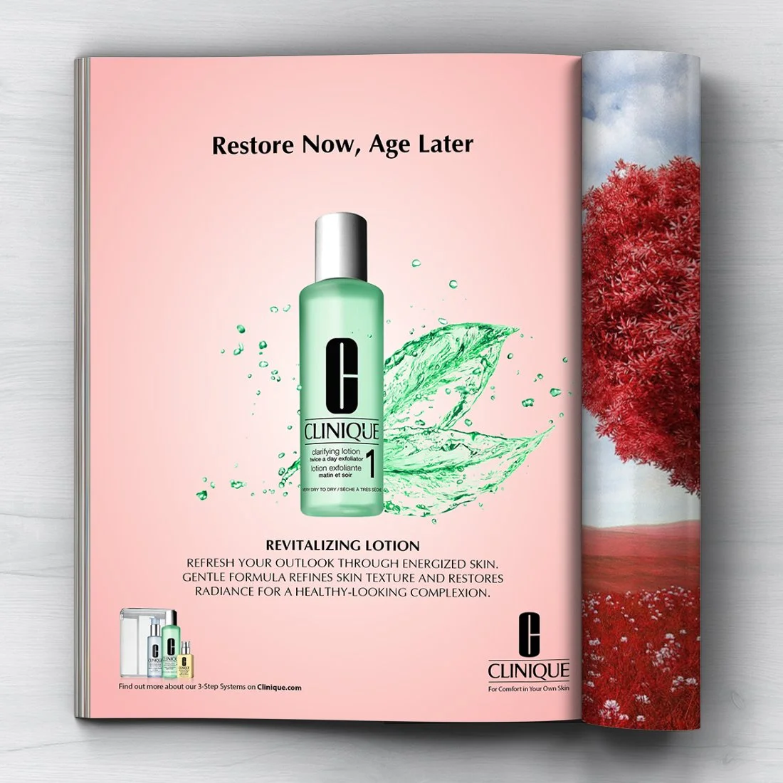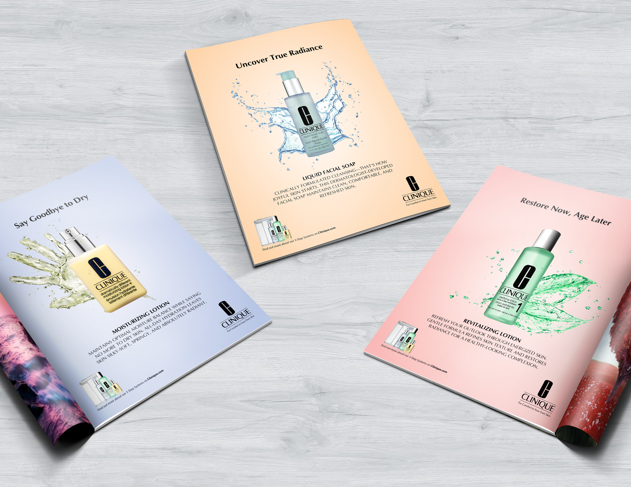 Clinique is a skincare brand rooted in clarity and skincare science. As a designer on this project, I served in the conceptual development of campaign assets for the launch of a new three-step skincare system. My approach centered on clean, modular layouts, elevated product styling, and refined typography.